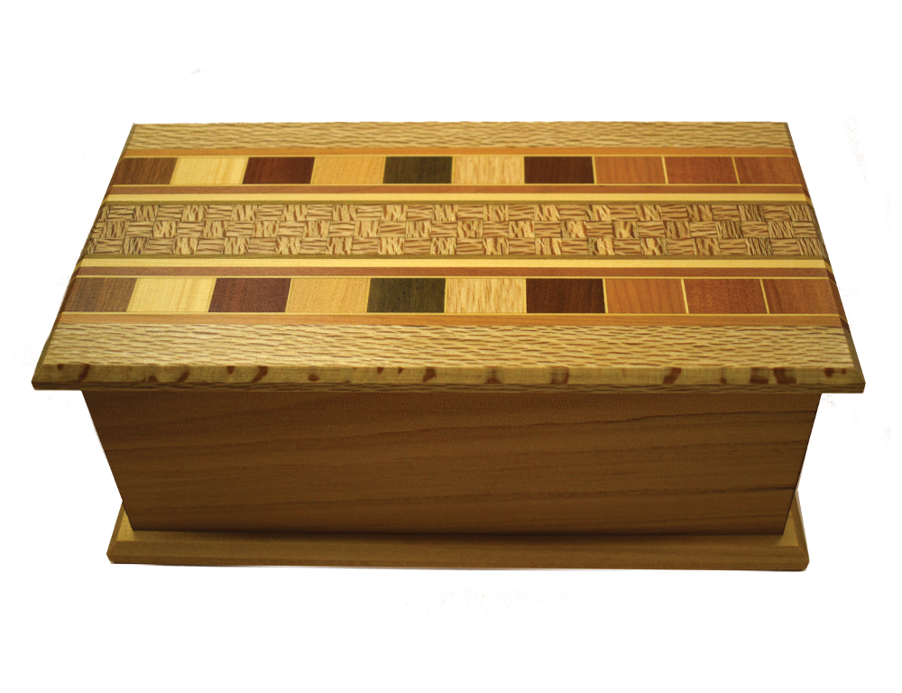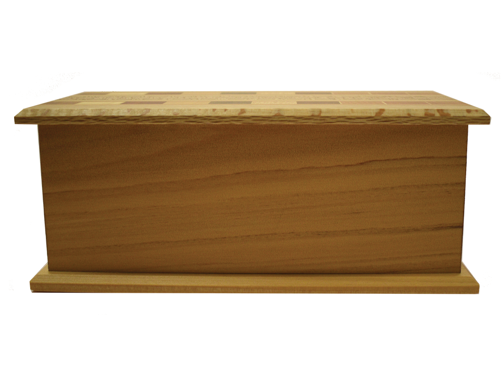 Size (external) 125mm x 240mm x 100mm. Clear coated. Overlap lid profile