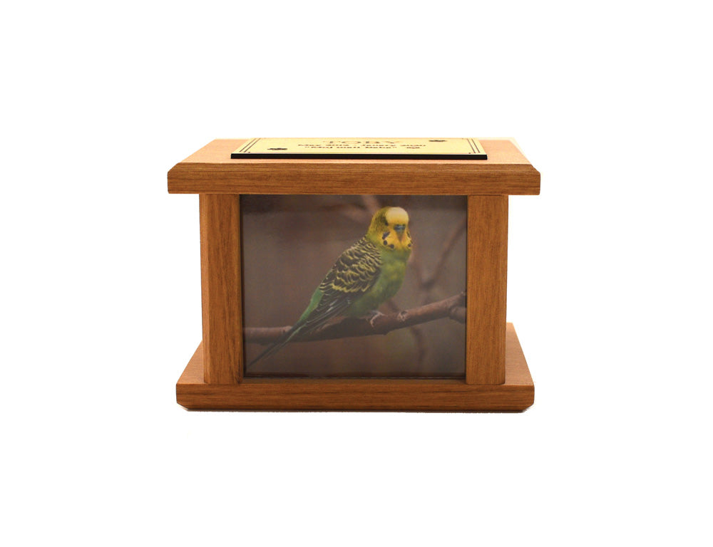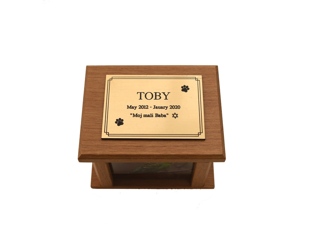 Urn Size (external) 45mm x 70mm x 30mm. Clear coated. Overlap lid profile