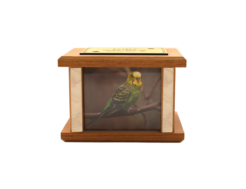 Urn Size (external) 45mm x 70mm x 30mm. Clear coated. Overlap lid profile