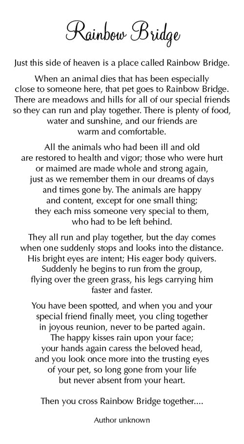 Rainbow bridge poem is a very meaningful way to show that you care and know they are hurting.